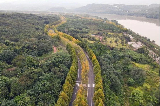 ▲廣陽島中干道兩側梧桐成蔭? 長江環保集團上游區域公司供圖