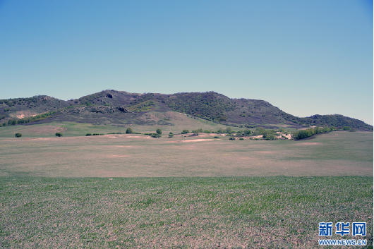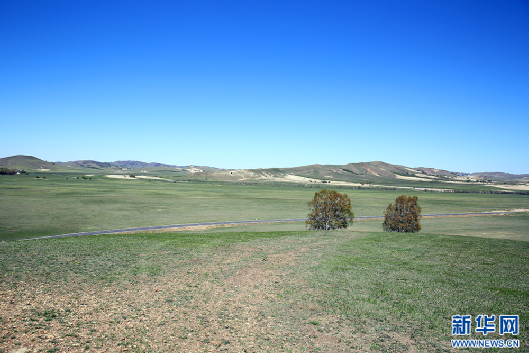 初夏時節,赤峰市克什克騰旗境內的渾善達克沙地泛起綠意(5月15日攝)。新華網石毅 攝
