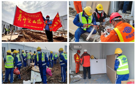 4月16日凌晨6點,安徽區域公司僅用7個小時就完成資源調配,迅速集結安能二局、中化十四建、中鐵五局、中交上航局4家聯合體單位400余名符合當前防疫要求的專業技術人員,第一時間組建支援隊、青年突擊隊和工人突擊隊,緊急奔赴現場,迅速開展實地勘測,有序實施“健康驛站”隔離點的建設任務。